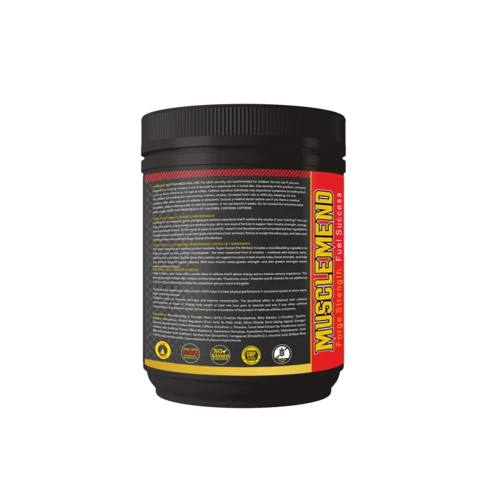 MuscleMend Pre Workout is a thoughtfully crafted supplement intended to support your training routine. Featuring a blend of studied ingredients, this high-potency formula provides energy, promotes endurance, and aids focus with every serving.
